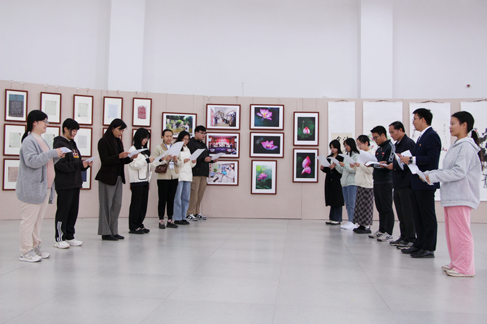 活动首先由武鸣校区管理中心常务副主任罗小玲教授作廉洁文化现场教学,深刻阐述了廉洁自律的重要性。全体同志认真聆听,接受清廉文化熏陶。随后,在杨勇老师的带领下参观了党建展示馆,其中的历史资料和展品让全体同志对中国共产党的发展历程及公司的发展历史有了更深入地了解。接着,师生一行移步到A7老员工活动中心,参观了廉洁书画作品展和勤廉榜样先进事迹展。一则则生动的廉洁书画作品和感人的事迹让党员们深刻感受到一身正气、两袖清风、廉洁自守的医大人风范,让全体同志在历史传承中感受到了廉洁文化的熏陶。这些展览不仅展示了艺术与廉政教育的结合,也激励员工要成为遵纪守法、品德高尚的新时代青年。活动最后,师生集体朗诵了《爱莲说》,寓意着对中国传统文化的传承和青年学子的志存高远。