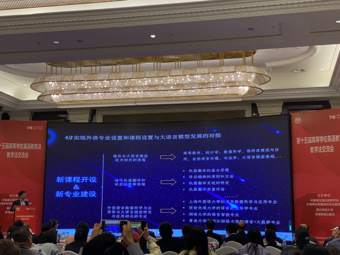会议以“发展教育新质生产力、贡献外语力量”为主题,重点围绕外语学科的高质量发展、外语教育在教育强国战略中的地位、外语学科的新格局与新发展、语言智能与外语团队建设、关键领域涉外人才培养与战略布局、英语教学法改革与创新、英语专业课程思政高质量建设、教师数字素养提升等议题展开讨论与交流。会议强调了从“英语教学”向“英语教育”理念的转变,以及英语专业教育面临的挑战和改革探索。
